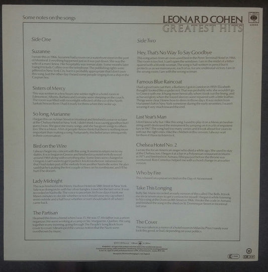 Leonard Cohen. Greatest Hits ( Re Issue Red Labels ) VG+VG