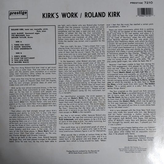 Roland Kirk with Jack McDuff. Kirk's Work ( German Issue ) VG+VG