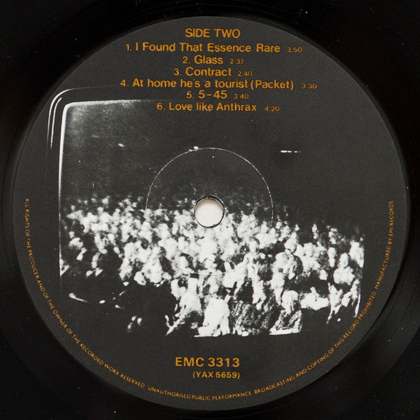 First issue released with custom labels, EMI Gang Of 4 design on side-A and an image printed on side-B. Later editions have Gang Of 4 design on both sides.
