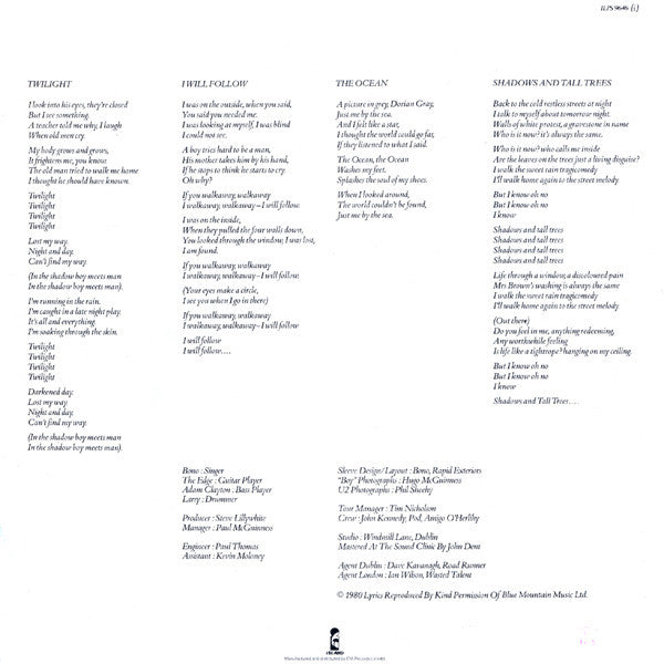 U2's debut album "Boy" stands as a landmark release in post-punk and alternative rock. Released in 1980, this iconic LP introduced the world to Bono's soaring vocals, The Edge's innovative guitar work, and the band's distinctive atmospheric sound. Featuring standout tracks like "I Will Follow" and "Electric Co.," the album captures raw energy and emotional depth that defined a generation. An essential addition to any serious music collection, this vinyl pressing delivers the pristine audio quality that makes the original recording shine.